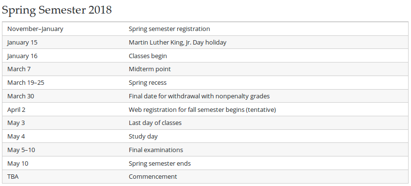 The table below outlines the schedule for this semester. The exam dates are fixed.